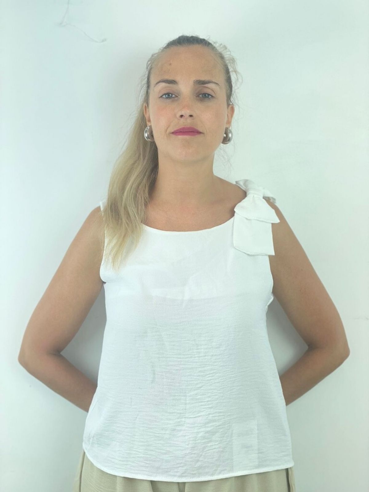 Blusa con lazo al lado blanca