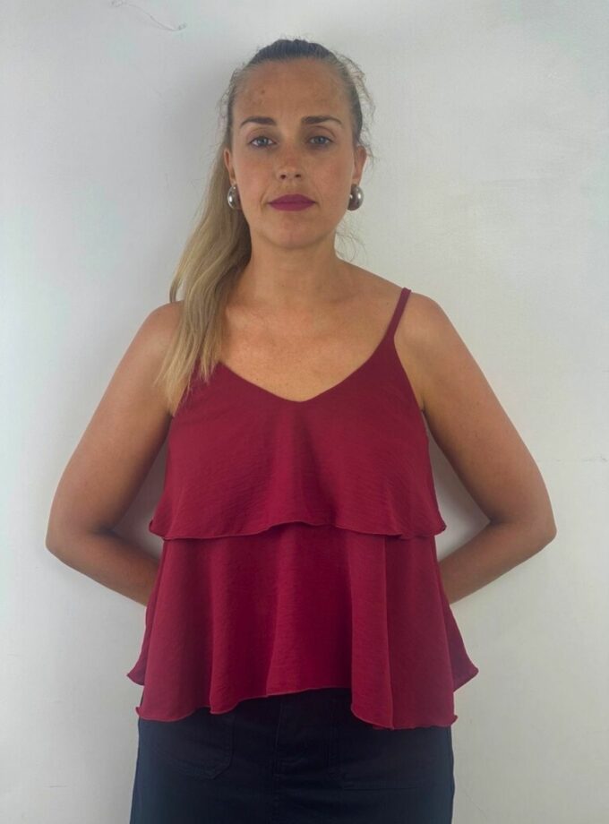 Blusa tirante fina volante burdeo
