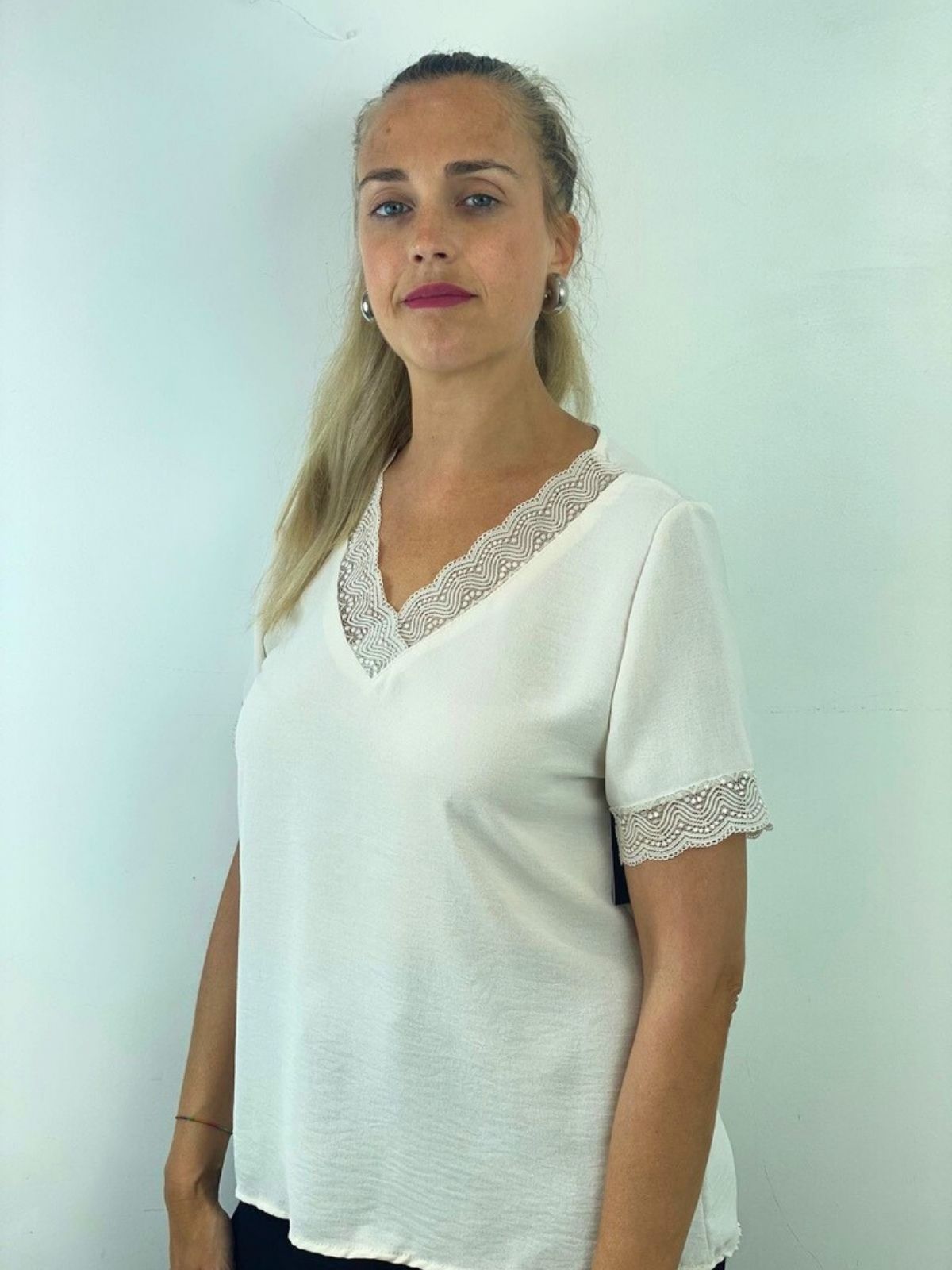 Camiseta lencera manga corta beige