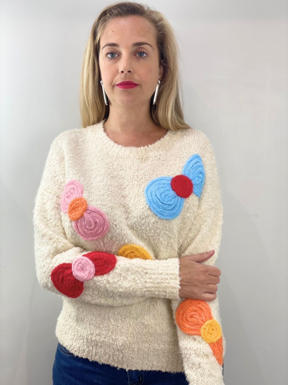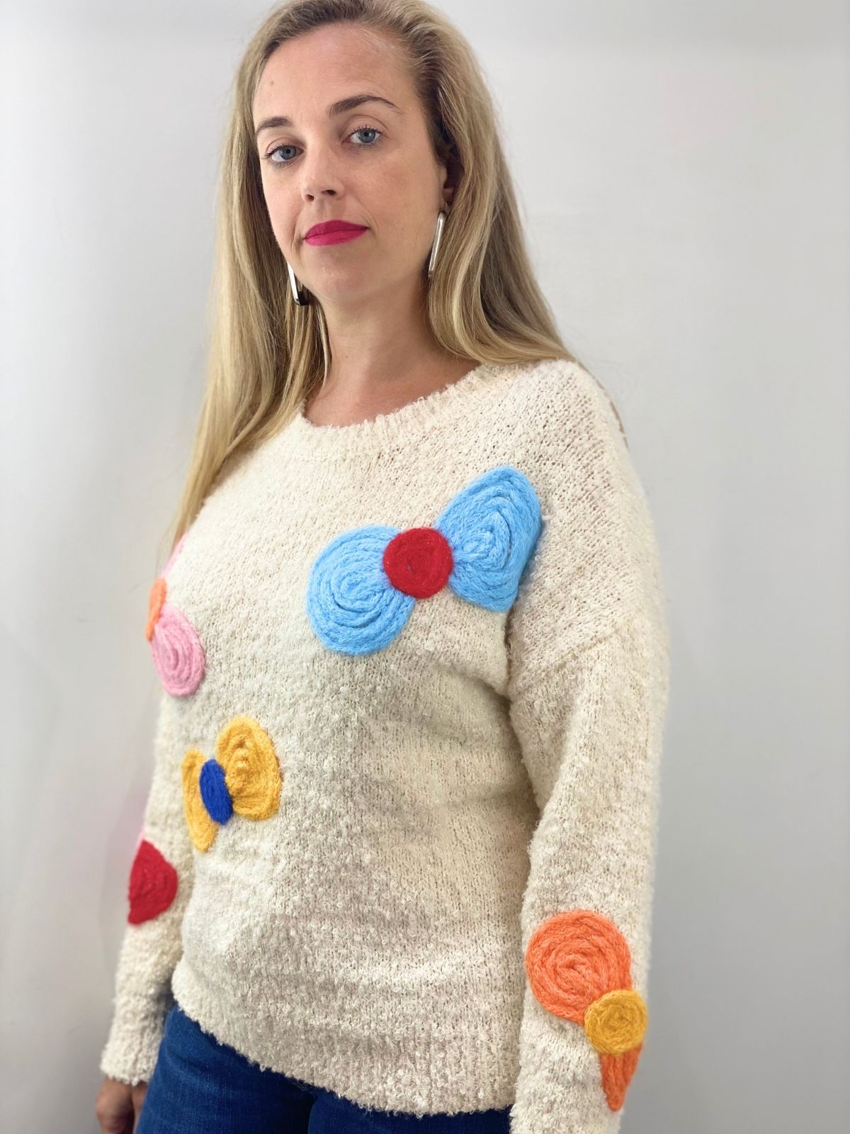 Jersey beige dibujos lazos